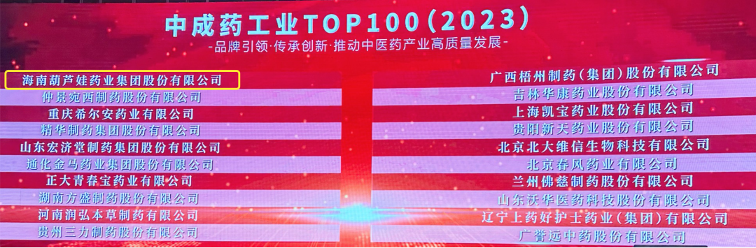会上,还发布了“2023中成药工业TOP100”榜单,壹号娱乐药业集团荣耀上榜。